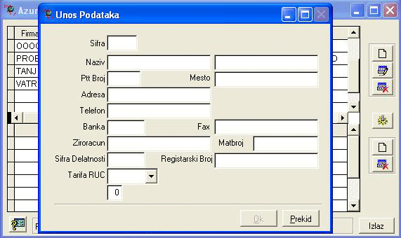 već prijavljena firma. Kada unesete preko gornjeg ekrana novu firmu, otvaraju se baze za podatke za tu firmu i aplikaciju. Tada vam se nudi na ekranu desno i ta firma za unos podataka i rad. |