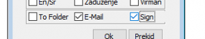 Kada je potrebno da posaljete jednu ili vise elektronski potpisanih faktura na razlicite mail-ove, ova opcija to omogucava. U sifarniku partnera popunite polje e-mail za svakog klijenta kome saljete fakturu. Program poziva pomocni program za potpisivanje(jsignpdf) trazi da unesete pin i posle potpisivanja salje na mail klijenta. Neophodno je da se instalira program za potpisivanje JsignPdf.