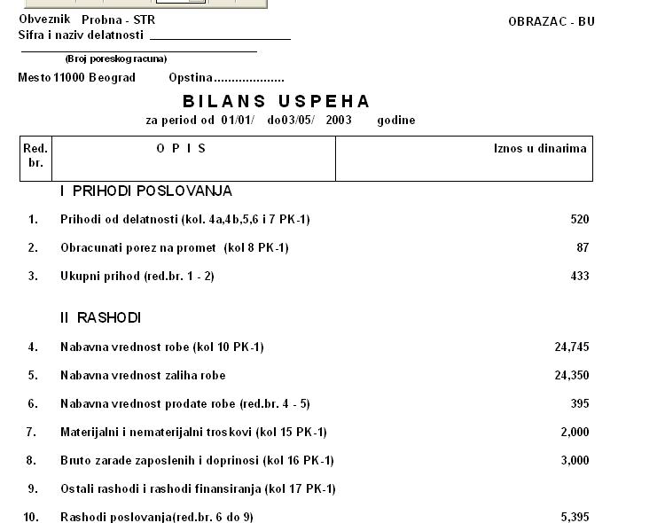 obrasca bilansa uspeha BU je desno a izgled obrasca je na slici dole. Polje