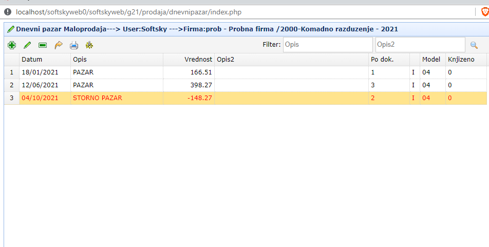 izgled kolone razduženja u Kep knjizi. Kada napravite prodaju