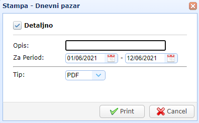 pregled pazara u određenom periodu. Polje opis vam služi da eventualno