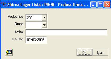 poslovnicu, grupu i artikal ne morate uneti. U tom slučaju dobijete lager