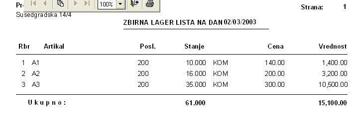 artikal. Zbirna lager lista je zbirna zbog toga što za određeni artikal daje