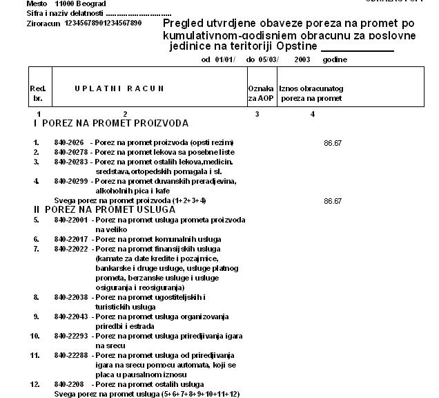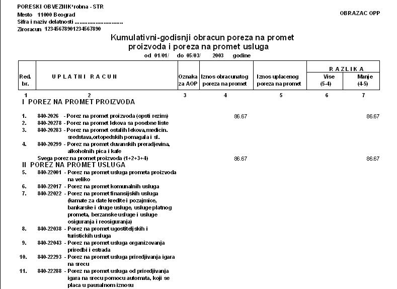 obrazaca OPP i POPP je desno a izgled obrazaca je na slici dole. Polje za