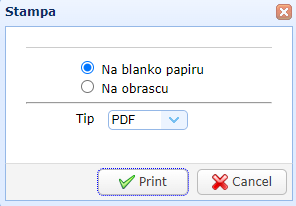 za upit. Možete birati jednu od dve ponuđene vrste štampe. Na samom dnu ove