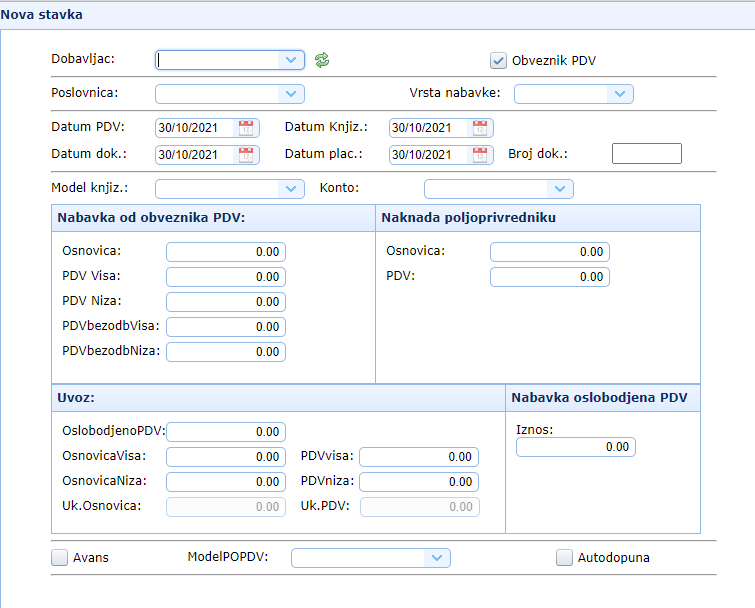 zakljucati stavku za dalju dopunu. Posle unosa osnovnih podataka pritisnite