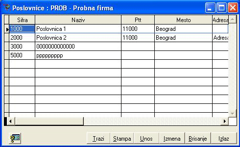 biti jedna ili više poslovnica. Šifarnik je zajednički za sve aplikacije u
