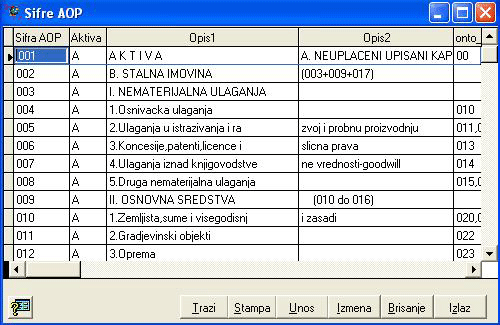 retkih koje korisnici ne treba da ažuriraju. Služi za obrasce Bilans uspeha