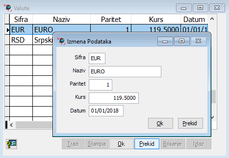 | Šifarnik valuta je na nivou aplikacije zajednički za sve firme. | ![]() |